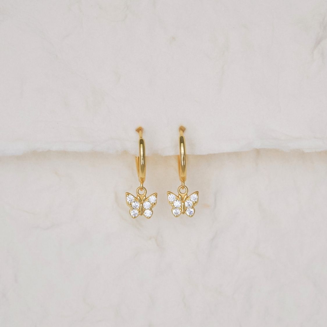 Light as air, sweet as spring. The Yara Earrings feature sparkling butterfly charms that flutter gently with every move — a symbol of transformation and joy. Dainty, dreamy, and perfect for everyday magic.