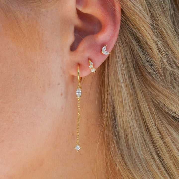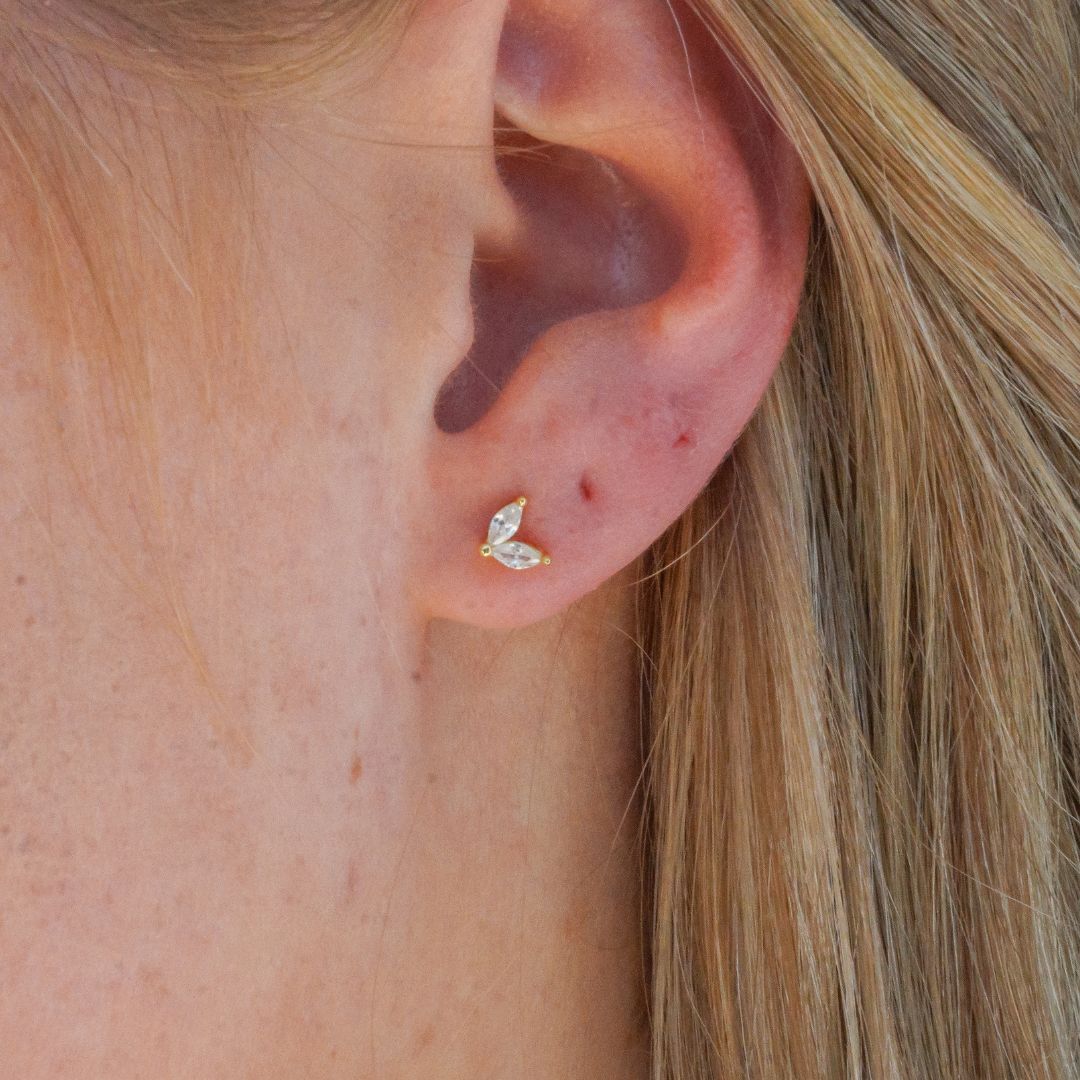 - المواد: ذهب عيار 18 قيراط على الفضة الإسترلينية عيار 925، زركونيا مكعب . خالي من النيكل والرصاص، مناسب للبشرة الحساسة.