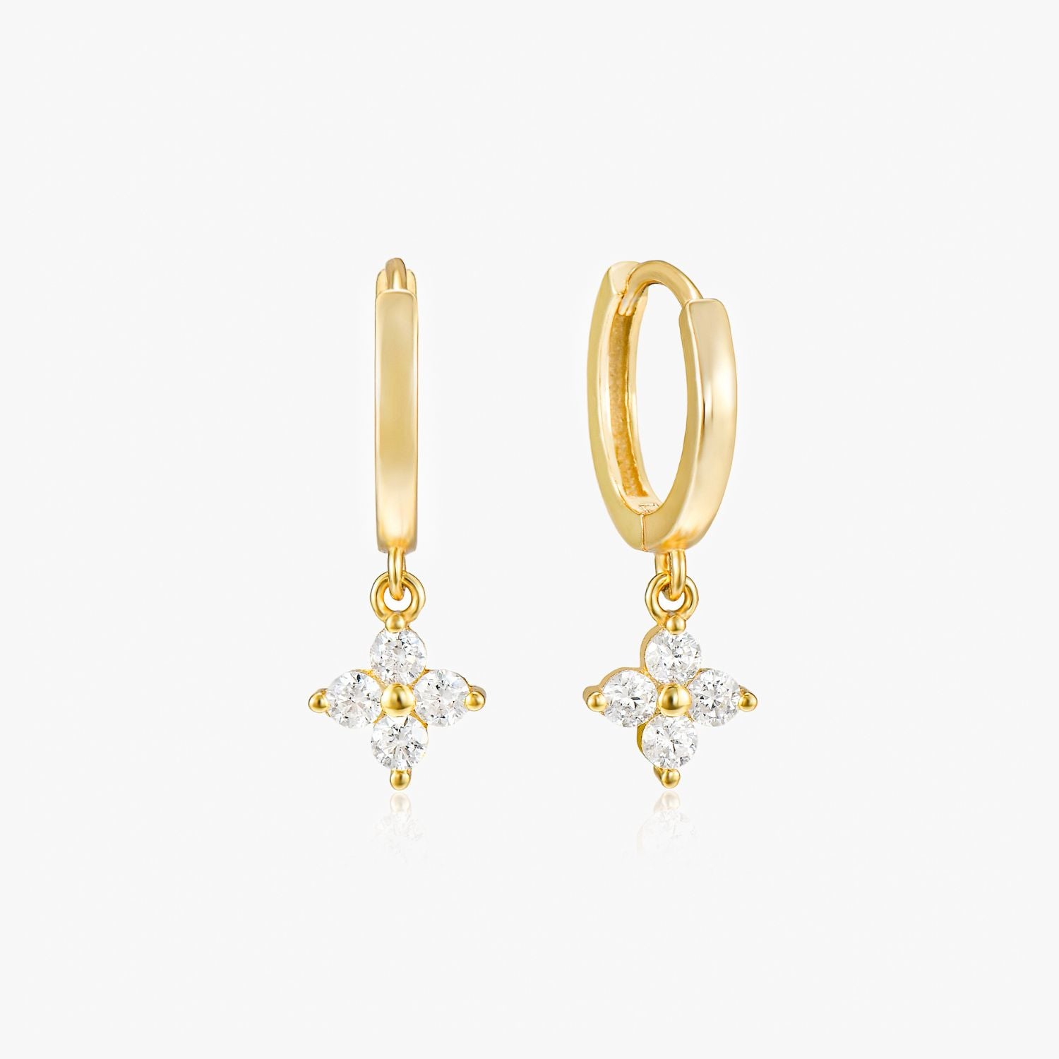 Featuring delicate flora elements, studded with dazzling cubic zirconia stones and finished with a touch of 18K gold, these earrings offer an elegantly stunning look.