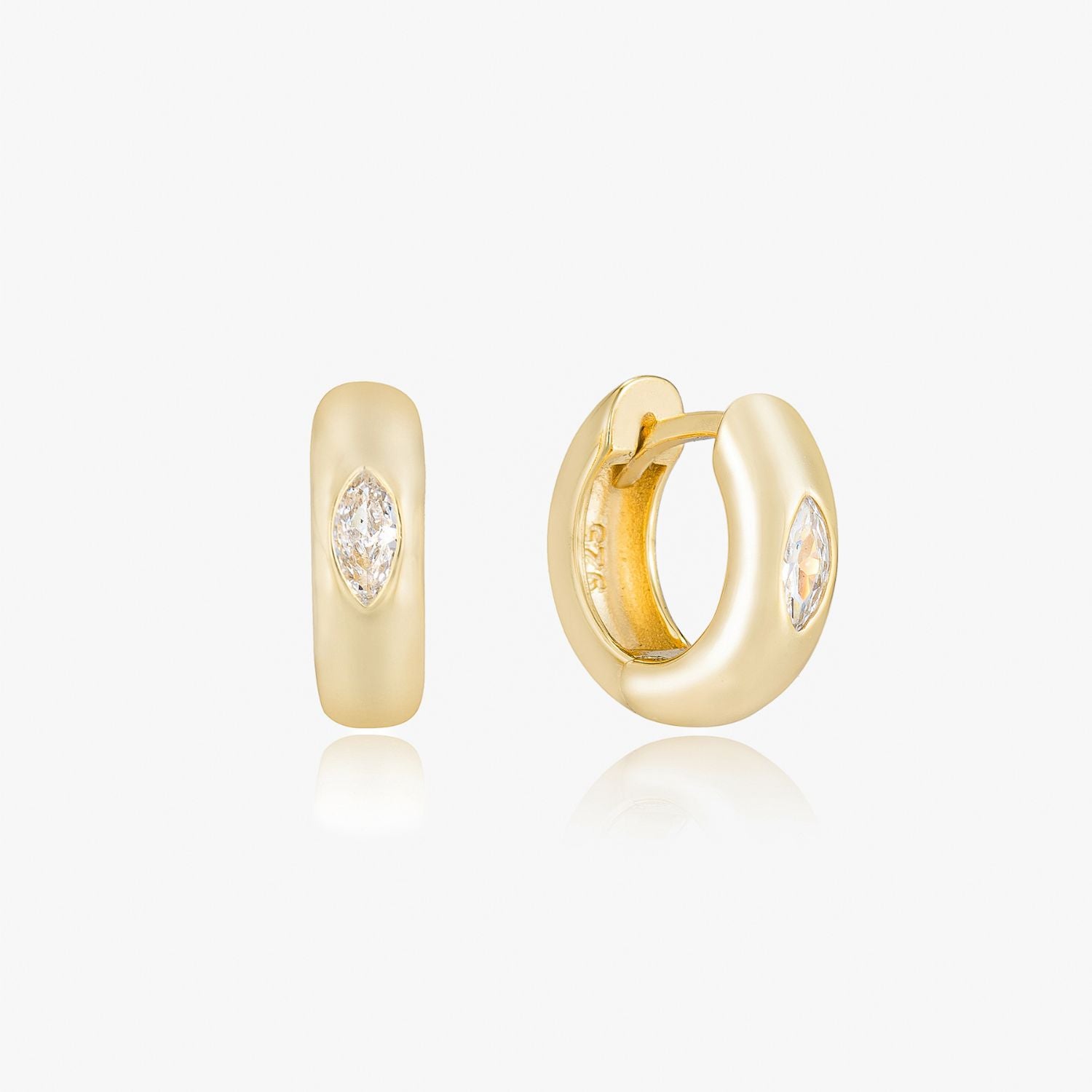 Featuring a bold gold hoop design and dazzling CZ stone in the centre, our Tessa is here to make a statement. Crafted with luxury 18k gold on 925 sterling silver, these earrings provide an elegant touch to any look.