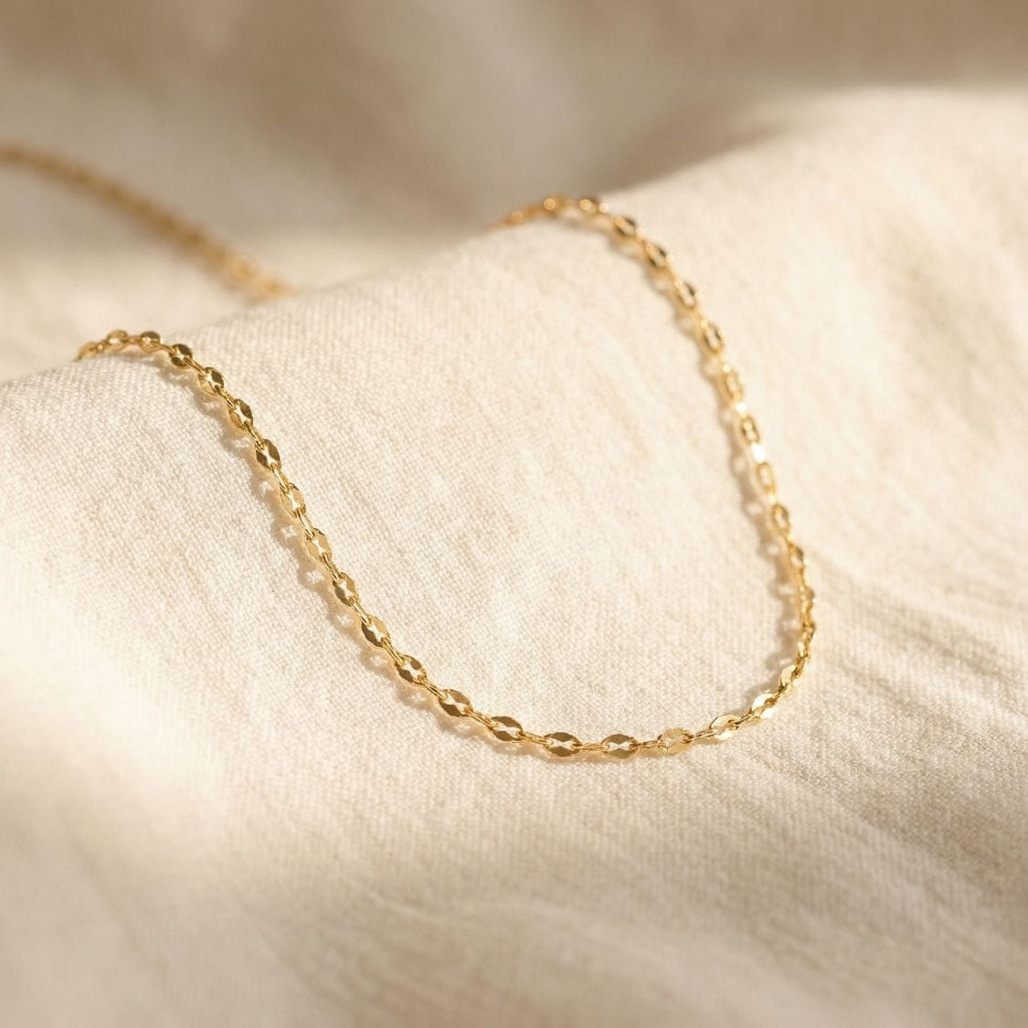 Delicate with a touch of shimmer. The Sage Necklace features a fine petal-shaped chain that catches the light with every movement. Wear it solo for subtle sparkle or layer it with your favourite pendants — a versatile essential for everyday elegance.