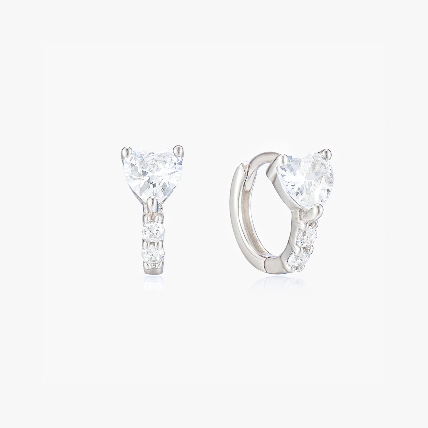 Rosa Silver Heart Huggie Earrings