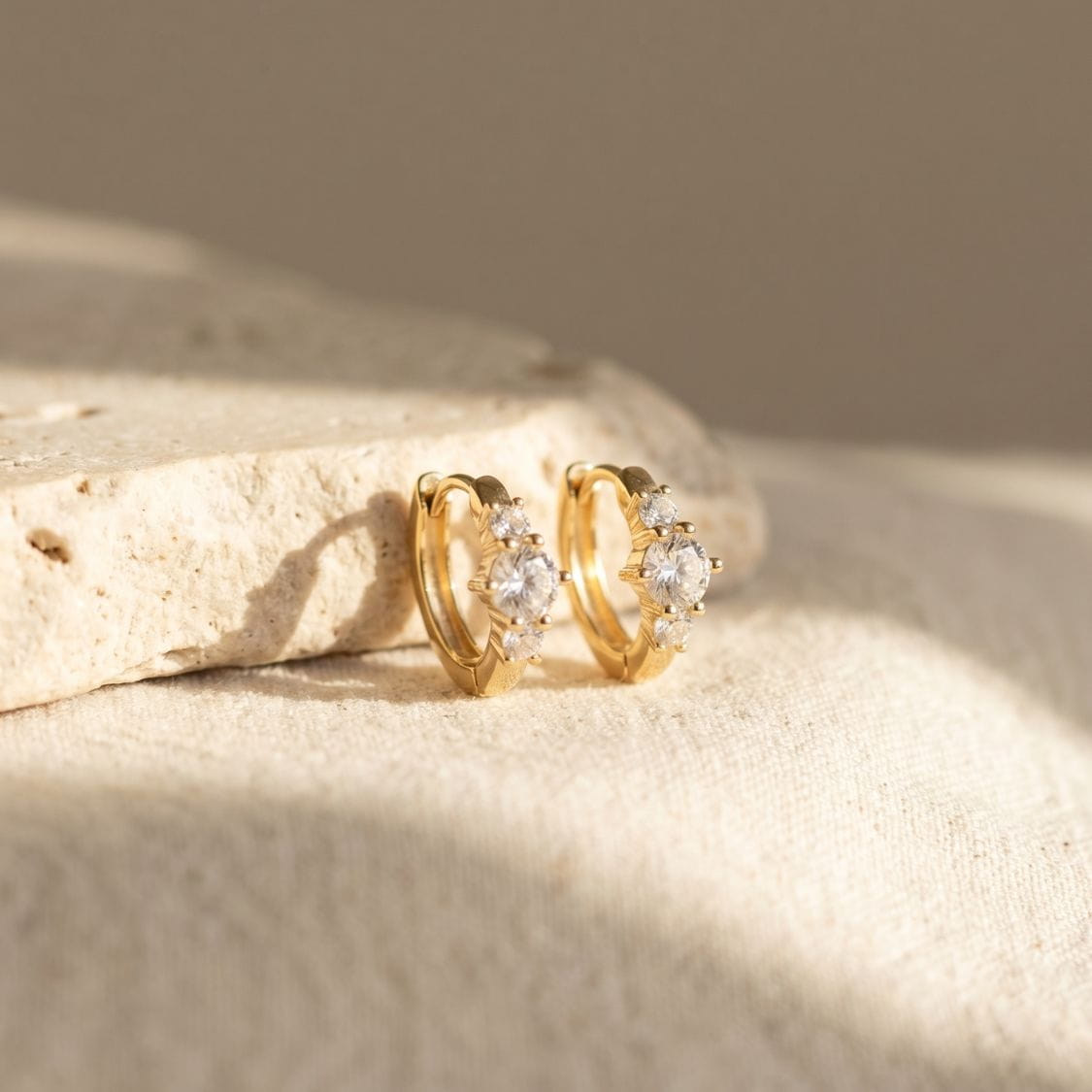 Minimal, balanced, and effortlessly refined. The Elin Trio Sparkle Huggie Earrings feature a trio of brilliant stones, creating a clean yet eye-catching silhouette. Perfect for layering or wearing solo, they add a quiet sparkle to your everyday stack.