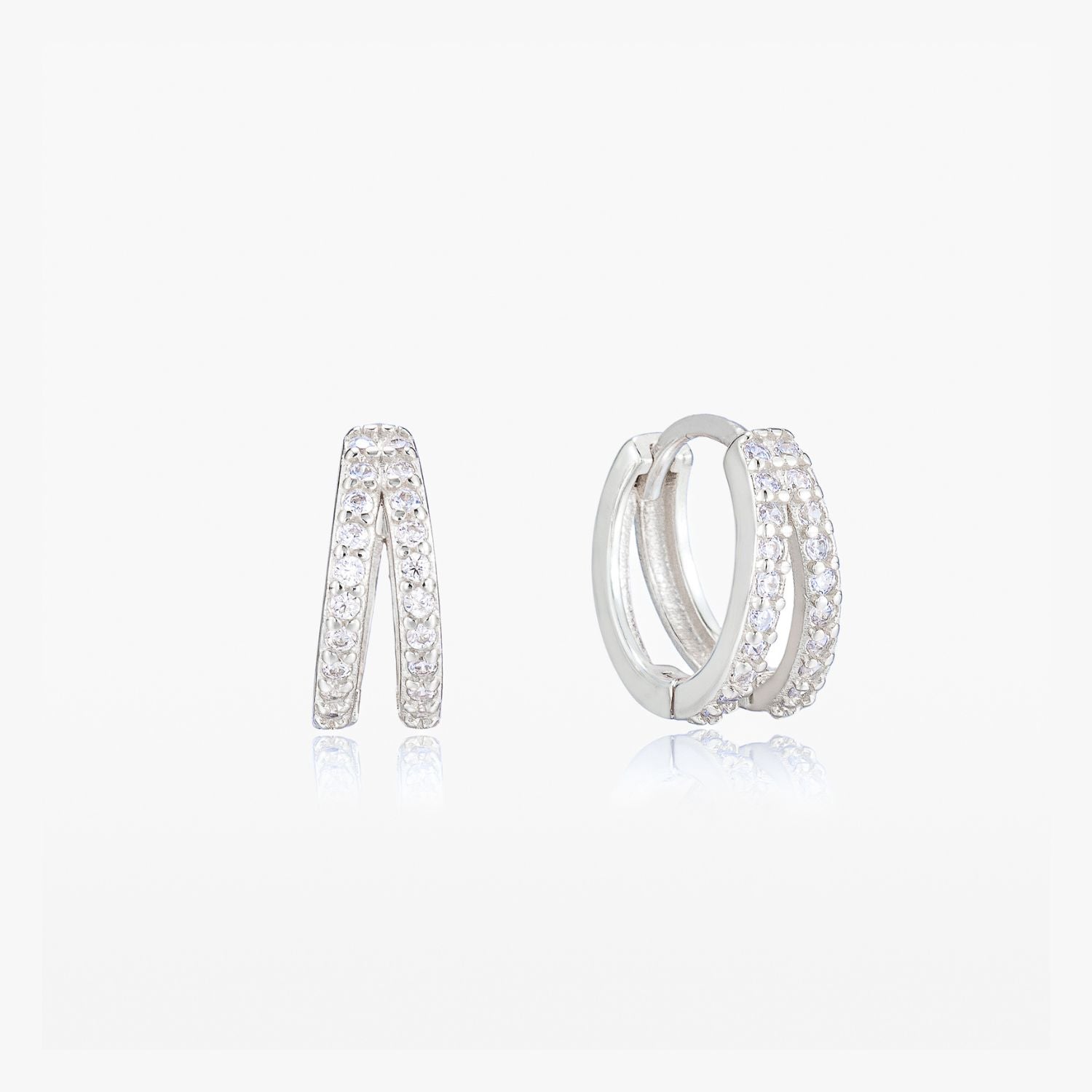 Kaylee Silver Double Pave Huggie Earrings