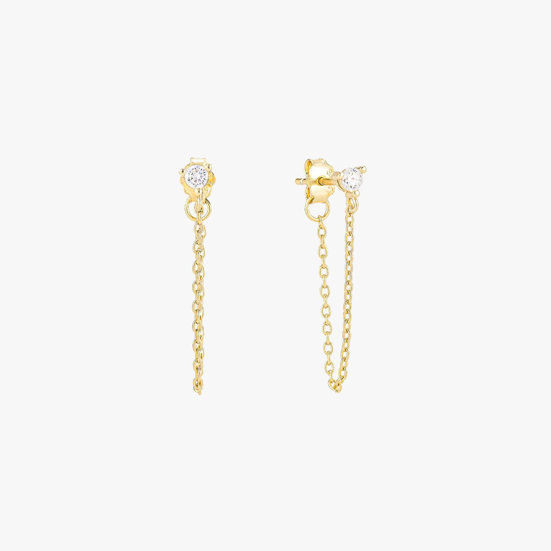 Alice Sparkly Gold Stud Chain Earrings