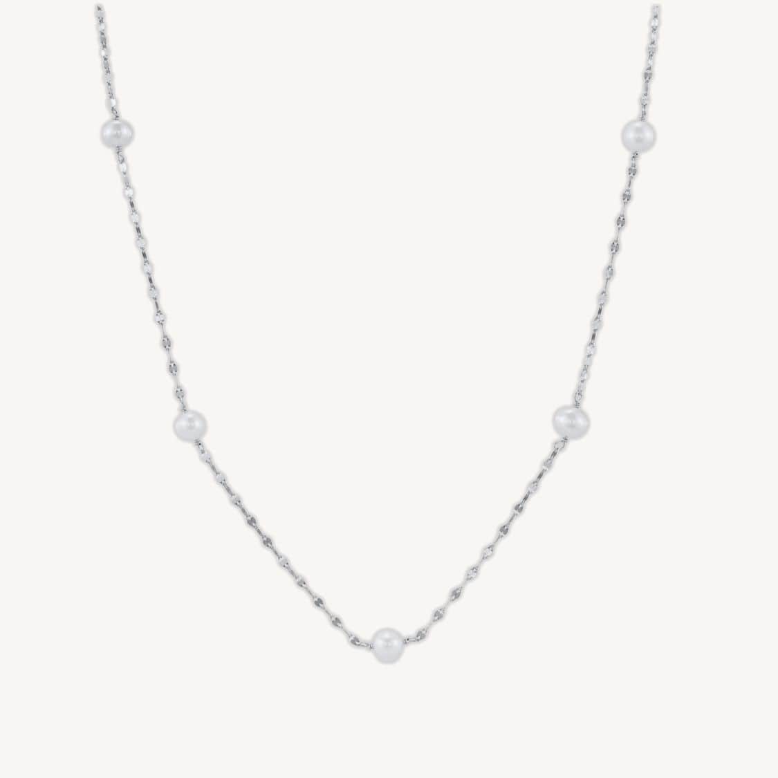 Adorn your neckline with the timeless elegance of our Pearl Station Necklace. Each round freshwater pearl is delicately stationed along a sparkling gold chain, offering a touch of sophistication for any occasion. Perfect for everyday luxury or a special event, this necklace is a versatile and chic addition to your jewellery collection.