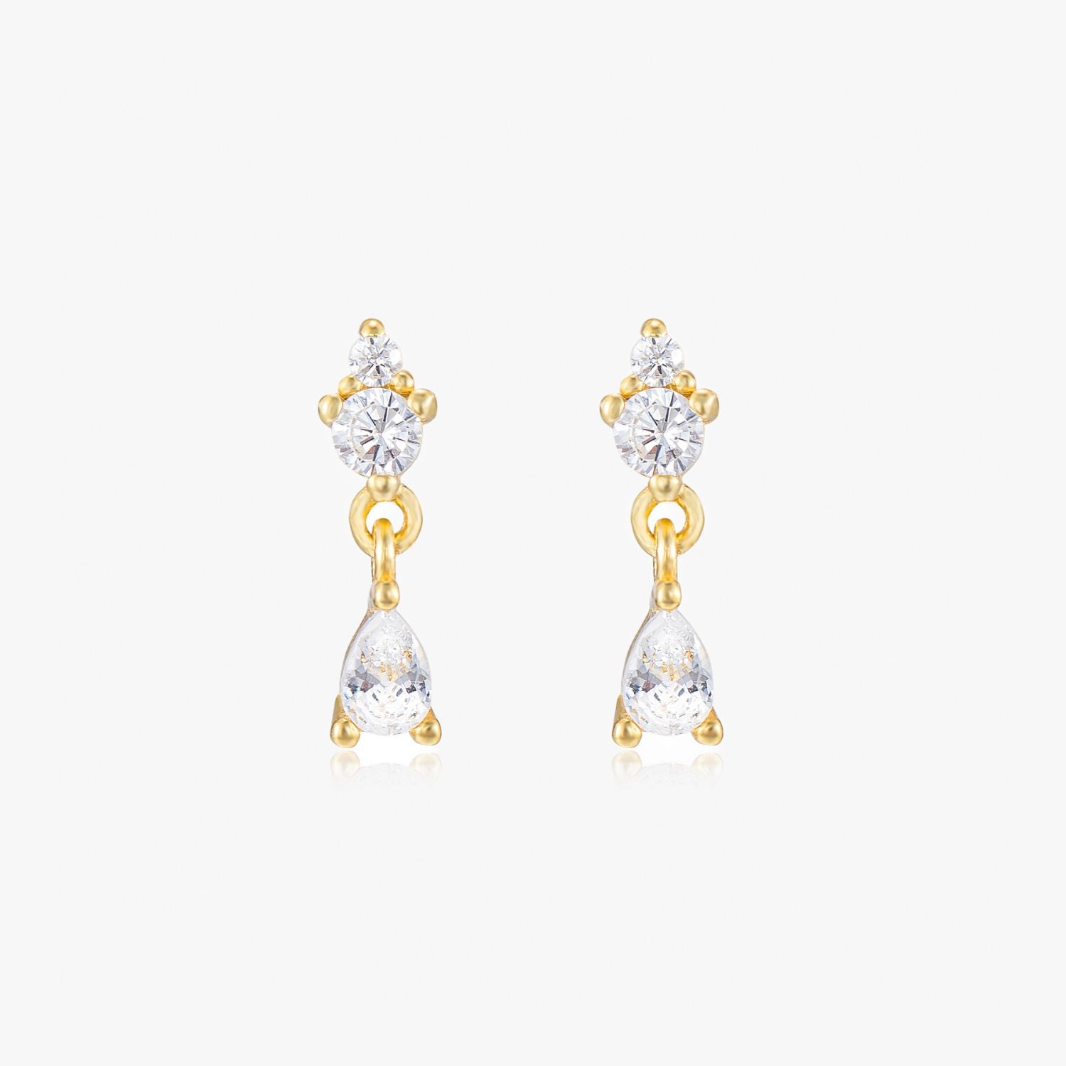 Skylar 2-in-1 Double CZ Gold Drop Earrings-Sterling Silver Earrings-LYANG & CO.