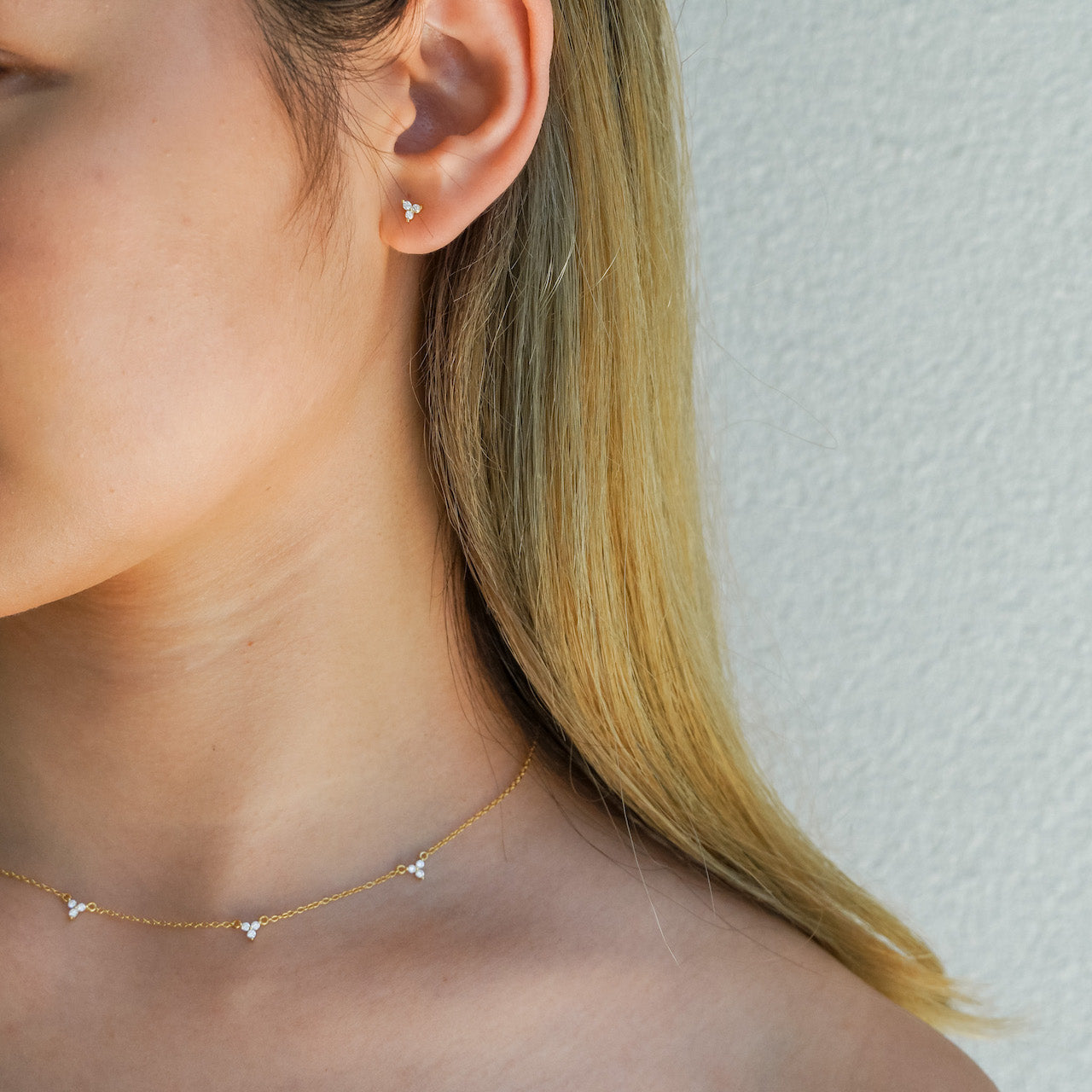 - Liliah Gold Trio Diamond Stud Earrings