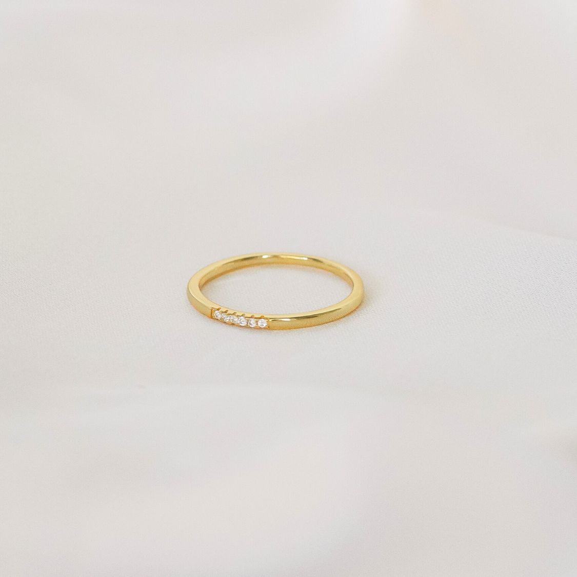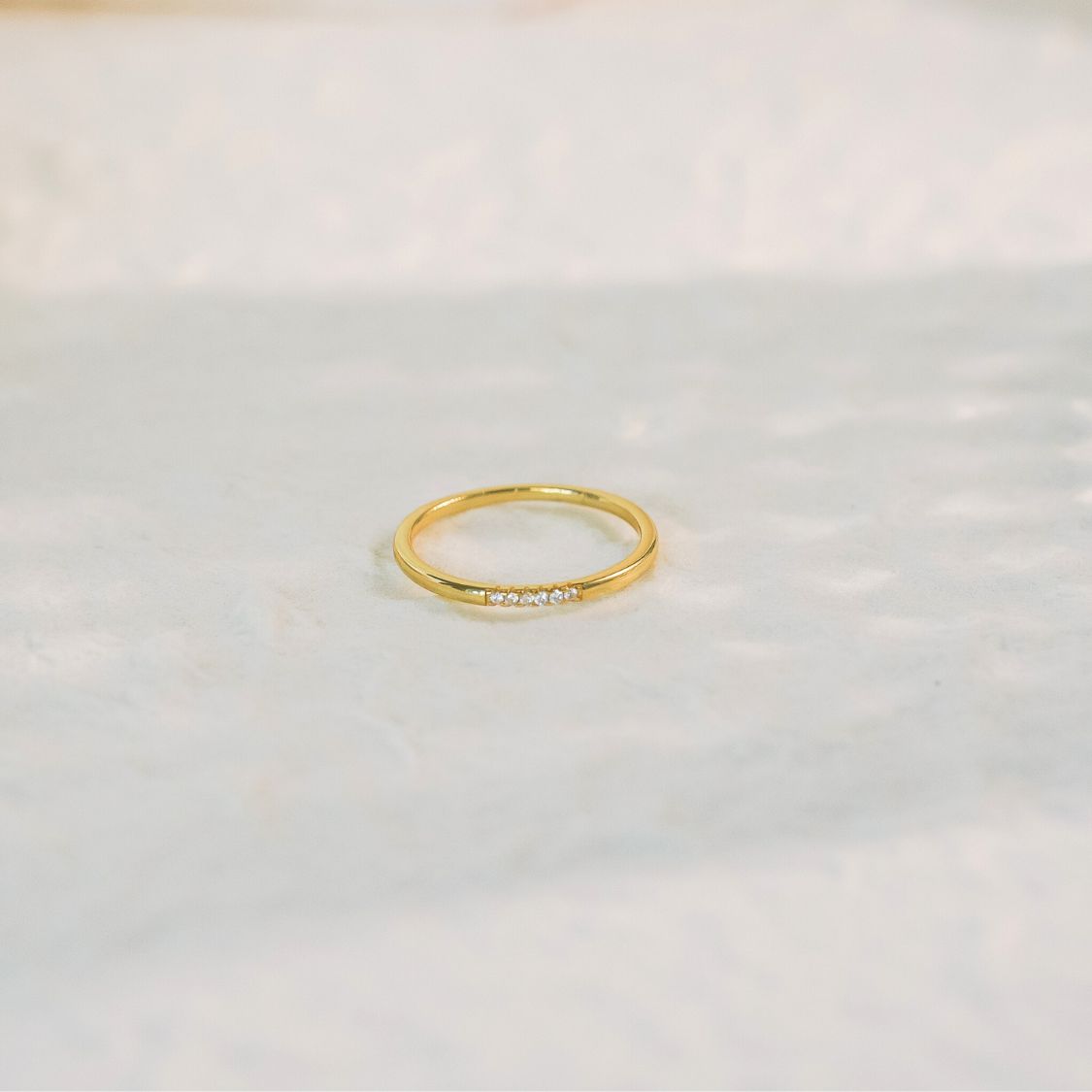 Delicate and endlessly versatile. The Sylvie Ring is a slender gold band dotted with sparkling pavé CZs – perfect on its own or layered with your favourite stack. A subtle everyday sparkle you’ll never want to take off.