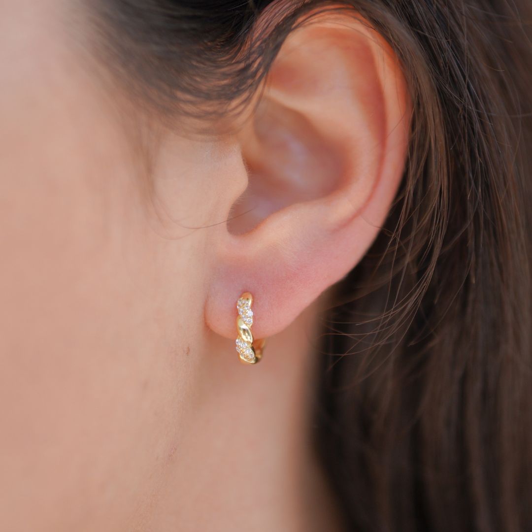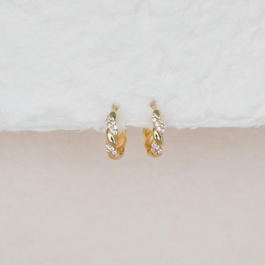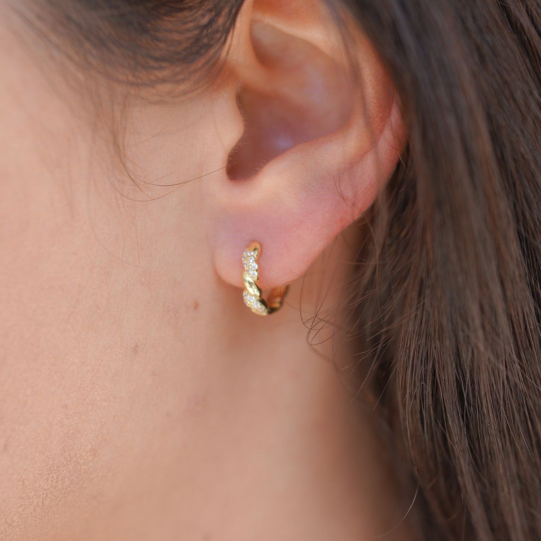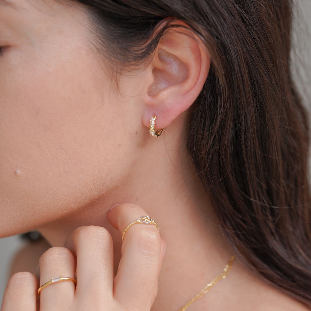 Classic yet modern, these gold twist huggie hoops are your new go-to everyday hoops! Crafted with 925 sterling silver, they are lightweight and comfy, perfect for everyday wear. Wear them solo or pair them with a stud or bigger hoop for a more chic look—they’re ready for any occasion and will definitely boost your confidence throughout the way!