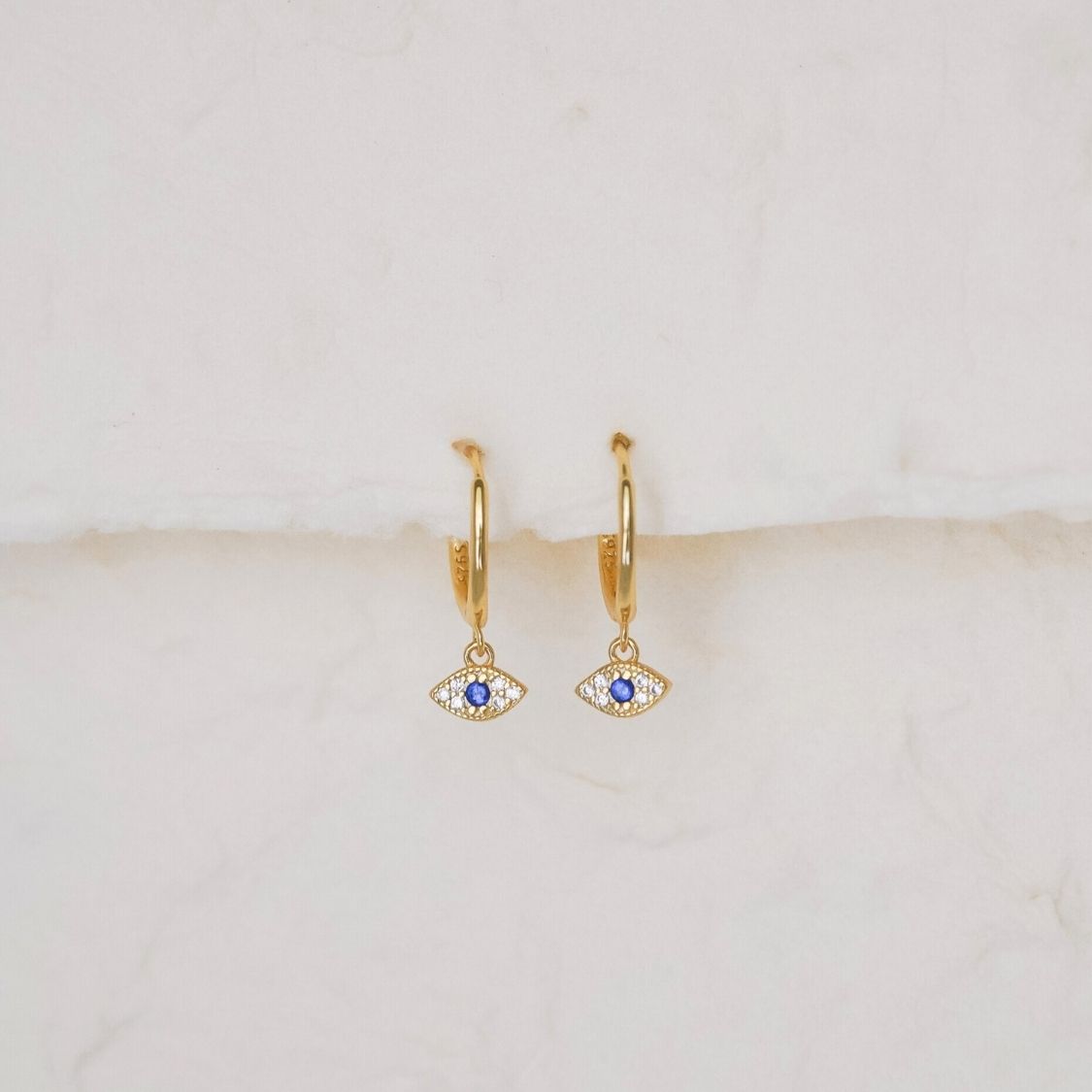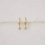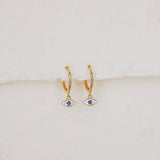 Known for its ability to bring peace and positive energy to the wearer, our Elanor Huggies feature a beautifully crafted blue and white enamel Evil Eye charm, adding a touch of mystique to your look.
