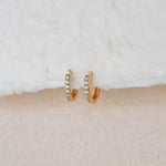 Add a refined sparkle to your daily style with these pavé huggie earrings, featuring a row of delicately set stones along the front. Designed with an 8mm diameter and a secured hinged lever closure, they offer a snug, comfortable fit that’s perfect for everyday wear. Lightweight and effortless to stack, these dainty huggies bring a touch of elegance to any look.